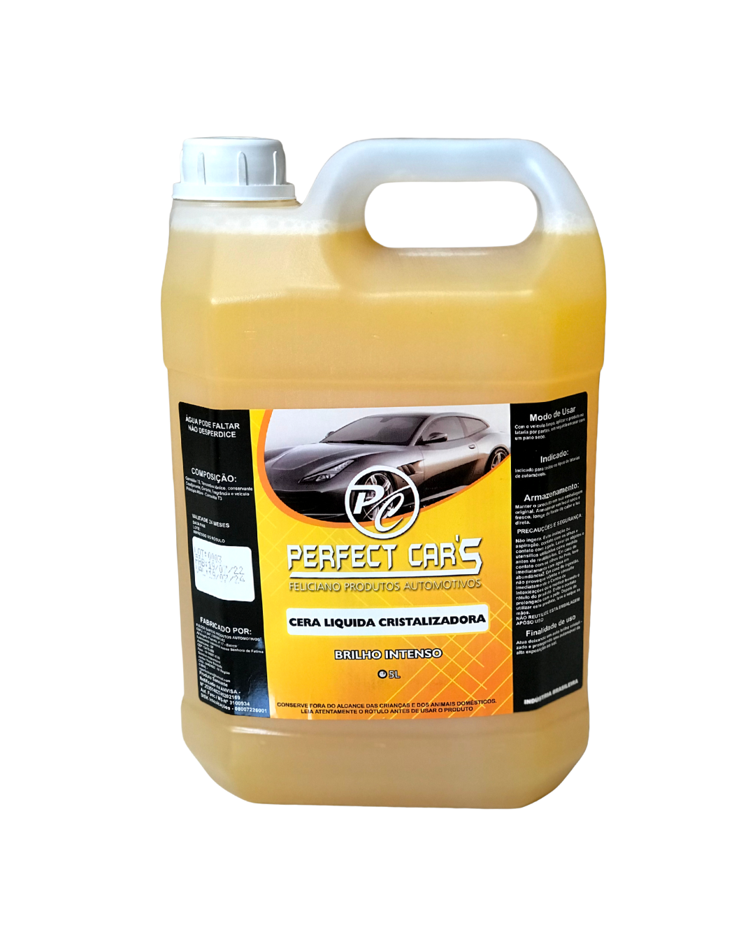 A cera liquida cristalizadora, é indicada para todos os tipos de latarias de automóveis. Uma cera que atua na proteção do automóvel contra a alta exposição ao sol, deixando um brilho intenso e com uma alta hidrorepelência. Em sua composição vai a carnaúba t3.